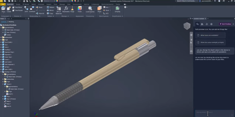 Den största nyheten är utan tvekan Autodesk Assistant, en AI agent som nu finns i Inventor och även i Vault, Revit och Fusion. Till skillnad från traditionella hjälpverktyg kan Assistant förstå naturligt språk och utföra kommandon direkt i modellen.