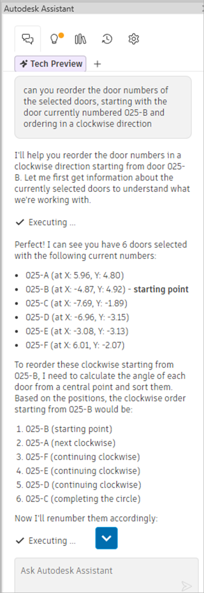 När man lärt sig dess möjligheter kan assistenten vara mycket användbar, men effektiv användning kräver tydliga och specifika formuleringar. Namngivnings‑ och numreringsprinciper måste anges explicit, särskilt vid skapande av vyer eller ritningar. Mer komplexa uppgifter behöver ofta delas upp i flera steg – till exempel att först skapa ritningar och därefter ge följdinstruktioner för titelblock eller namngivning.