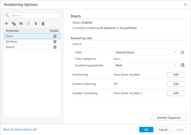 - Ifyllnad av parametrar genom kombination av rumsnummer, typmarkering och löpnummer