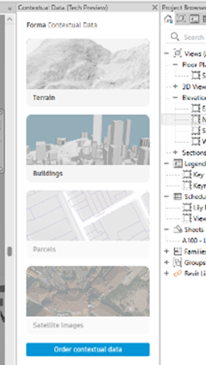 Funktionen levereras som en Technology Preview, vilket innebär att den kan komma att förändras i takt med att Autodesk vidareutvecklar arbetsflödet. I nuläget gör den det möjligt att länka in kontextuell data, såsom terräng och omgivande byggnadsmodeller, direkt i Revit. Dessutom introduceras vindanalys som kan köras från Revit‑miljön. För att kunna använda funktionen måste Revit‑modellen vara en molnmodell och kopplad till ett Forma Site Design‑scenario. Scenariot fungerar som en behållare i Forma Data Management och möjliggör informationsutbyte mellan Revit och Forma utan att export‑ eller importsteg krävs.